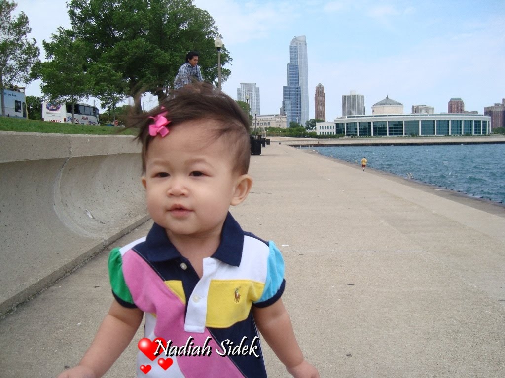 Masa ni angin kuat sangat! Tengok la rambut Safiyyah tu...dah nampak macam botak sebelah pulak..hihi. Oh ye, Chicago ada banyak gelaran, antaranya Windy City. Memang sesuai sangat la dengan gelaran tu..